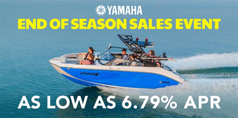**Available on new (unused, not previously warranty registered) eligible in-stock 2019 – 2026 Yamaha Sport Boat models only for qualified tier 1 credit customers who reside in the U.S.A. only (not available in all states) and finance through Yamaha Motor Finance Corporation, U.S.A. Offer valid 10/1/2025 – 12/31/2025. An introductory 5.99% APR for tier 1 financing for 60 months at $8.43 per month per $1,000 financed; thereafter 10.49% APR for 120 months at $10.25 per $1,000 financed. Not all buyers will qualify. Promotional rates are based on creditworthiness. Higher financing rates apply for buyers with lower credit ratings.